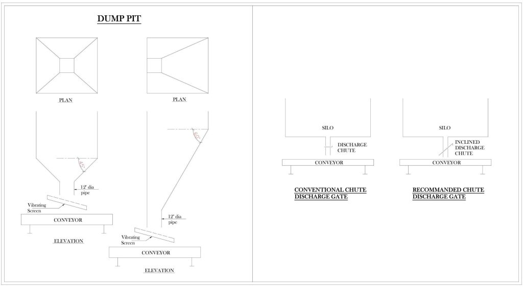 For making sure the silo chute discharge does not clog during the reclaim process the slide gate needs to be installed in inclined way to make sure that the static pressure on the food grains will emit droplets of the water which helps in sprouting of the grain and eventually clog the gate. If we have incline gate the droplets escapes the chute and making sure the free operation of the sliding gate.